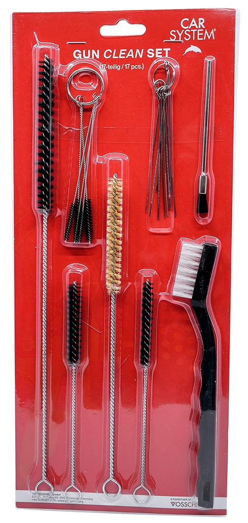 Carsystem Gun Clean Set on komplekt, mis koosneb 17 erinevast esemest pihustuspüstoli puhastamiseks. Püstoli puhastuskomplekt, 17 üksikut eset, 6 erinevat nõela ja 11 erinevat harja.